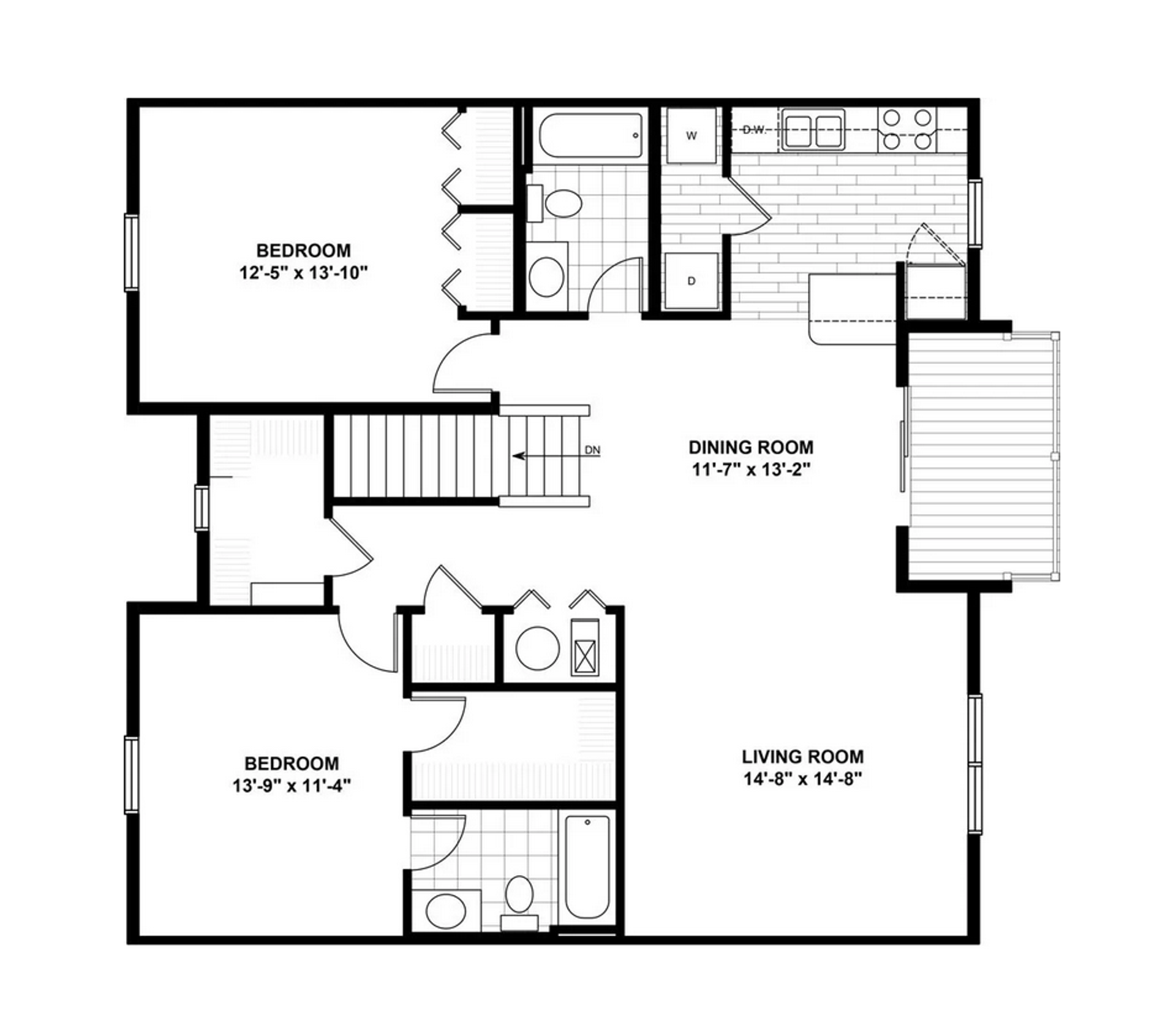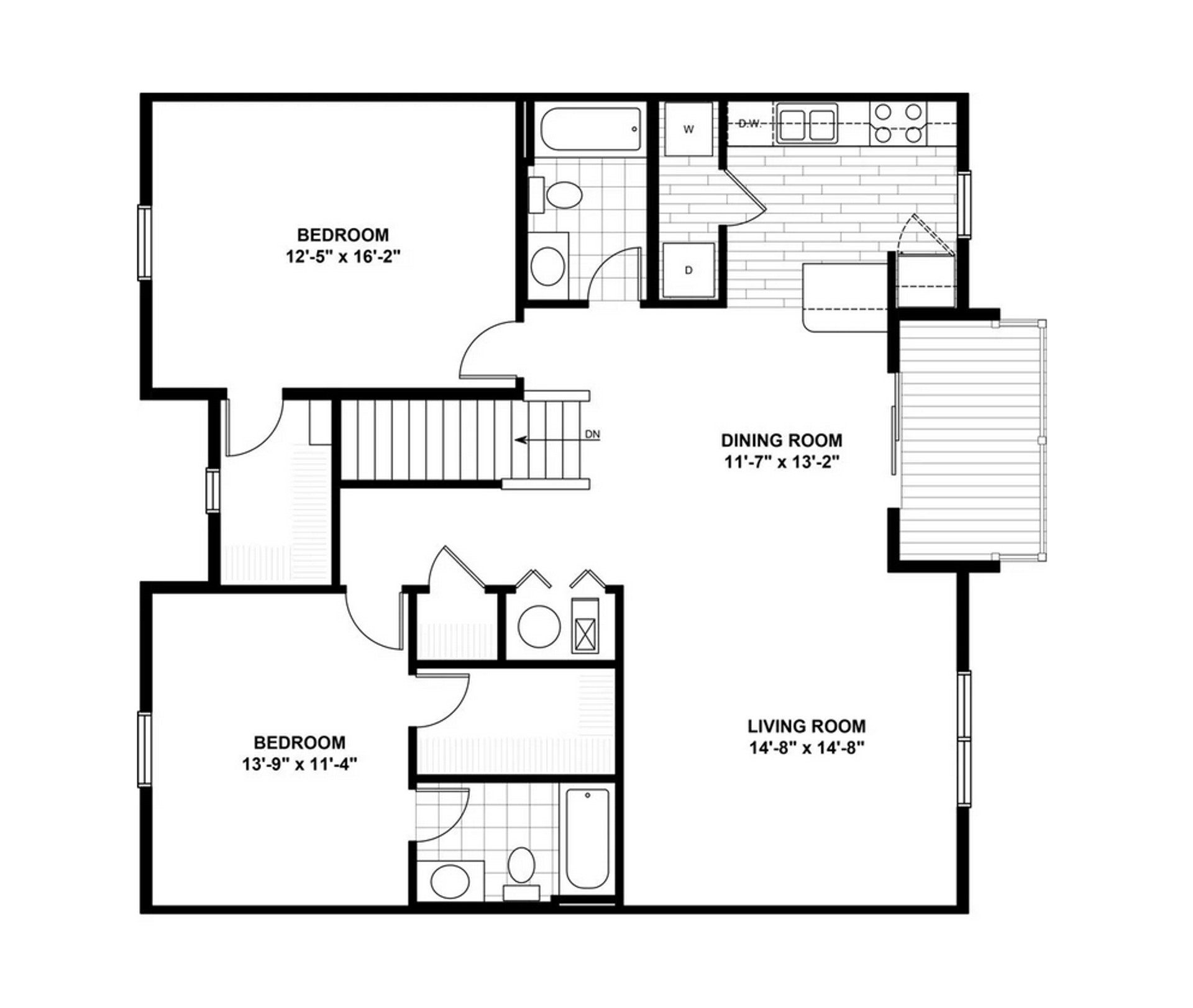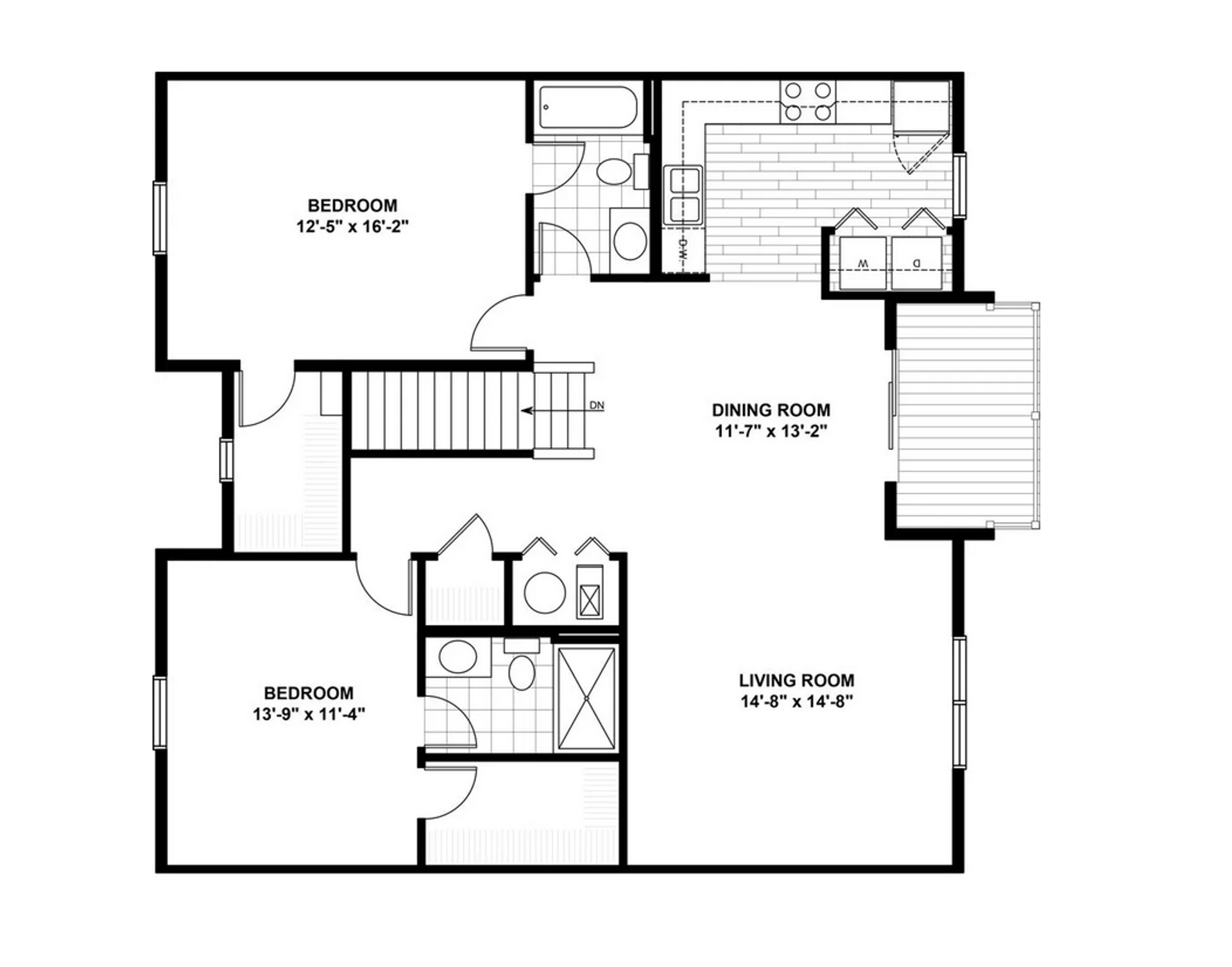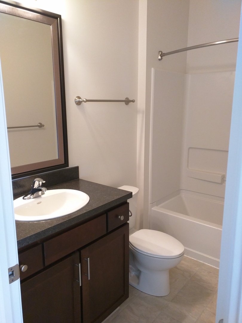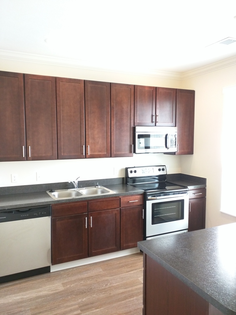 Offering a spacious 1,190 square feet, this Mila features dark wood cabinets with mineral counter tops. With bedrooms situated on opposite ends of the apartment, this floor plan is ideal for roommates! Your new home would feature modern luxury amenities including; stainless steel appliances, 9ft ceilings w/ crown molding throughout, an audible intrusion alarm, an abundance over head lighting, full size washer/dryer and much more. Contact our leasing office for more details!
